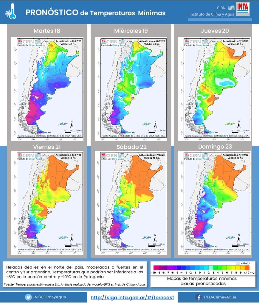 Para este miércoles, se estima que los registros comenzarán a amainar, y serán menos extremos conforme se acerque el fin de semana, de acuerdo con lo que muestran los mapas semanales del Instituto de Clima y Agua del INTA Castelar.