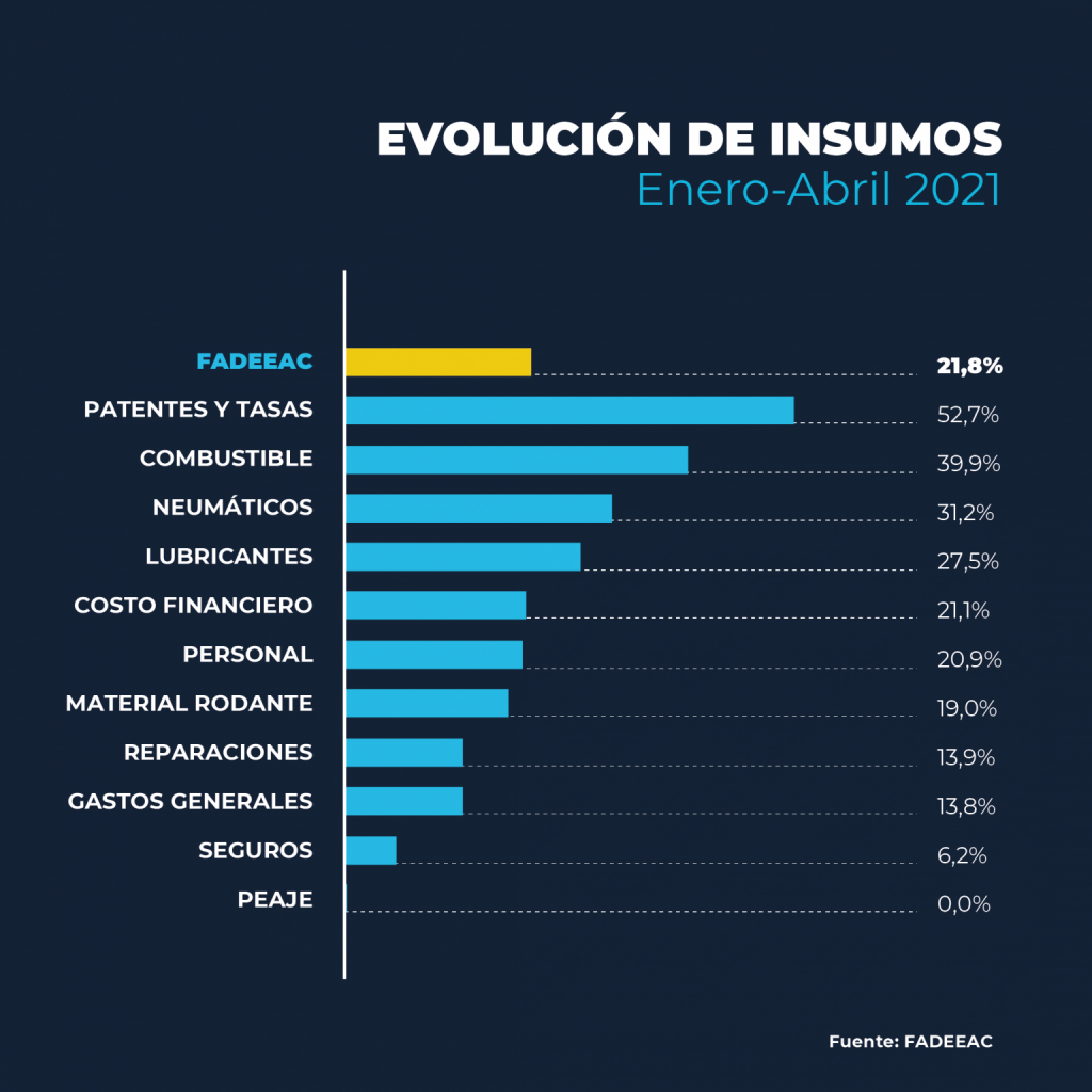 La Federación Argentina de Entidades Empresarias del Autotransporte de Cargas (Fadeeac) dio a conocer su índice de costos correspondiente al mes de abril de este año que marcó una suba de 5,4% y acumula en el primer cuatrimestre del año un alza del 21,8%.