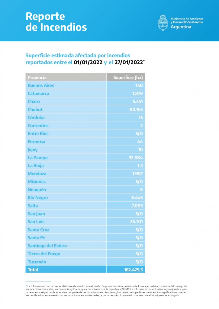 Contraria a toda esta información, el ministerio de Ambiente y Desarrollo Sostenible de la Nación, que conduce Juan Cabandié sostiene en su reporte del día de hoy que desde el 01/01/2022 al 27/01/2022 las hectáreas afectadas en Corrientes fueron dos.