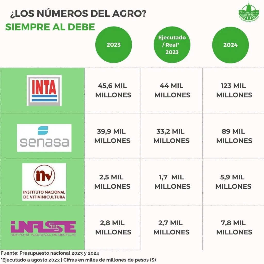 - El Instituto Nacional de Tecnología Agropecuaria -INTA– recibiría un monto casi 3 veces mayor al actual, pasando de unos $ 45.000 a $ 123.000 millones.