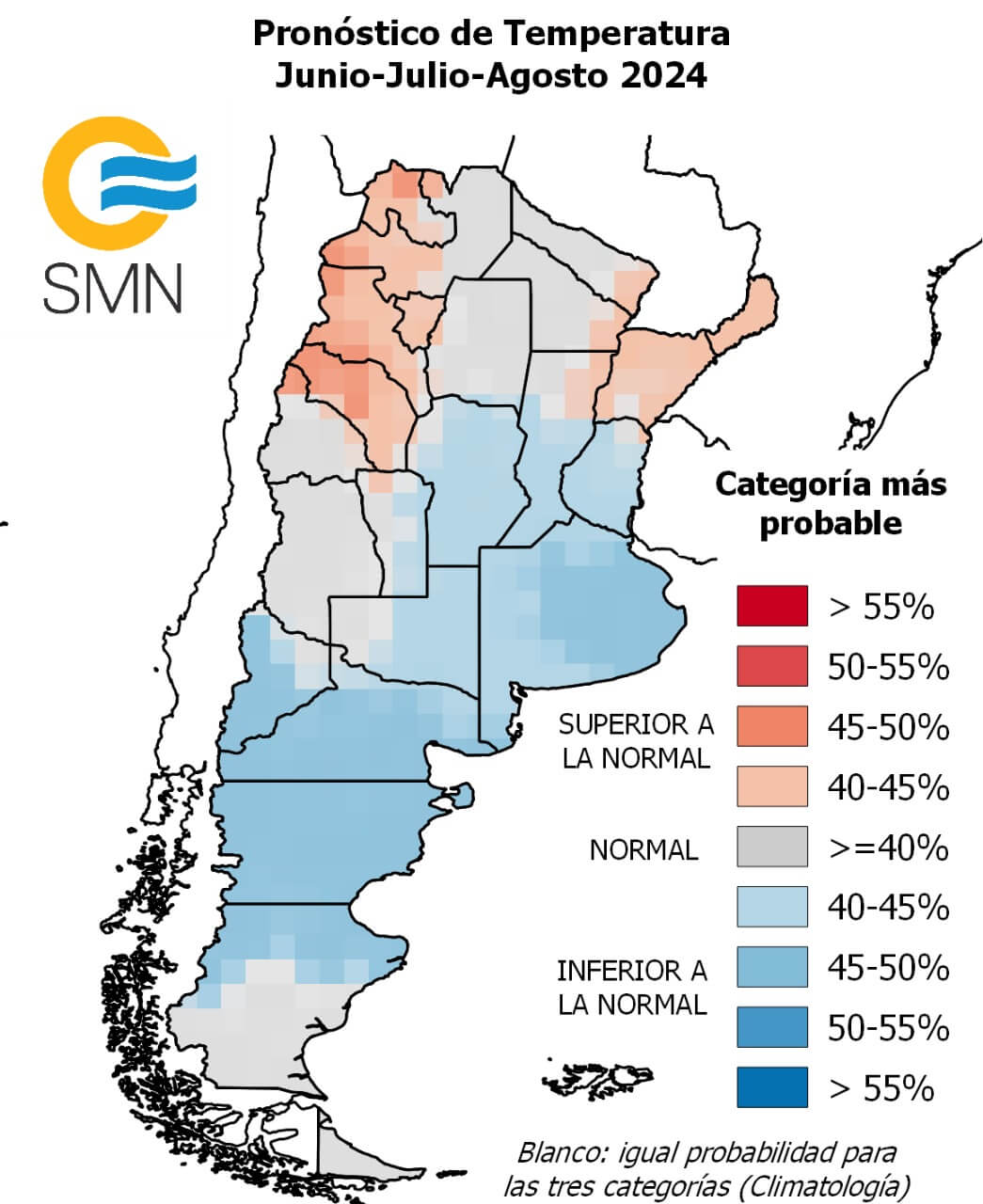 Por otro lado, el sur de Patagonia, Cuyo y las provincias del norte central muestran una mayor tendencia a tener un invierno normal.
