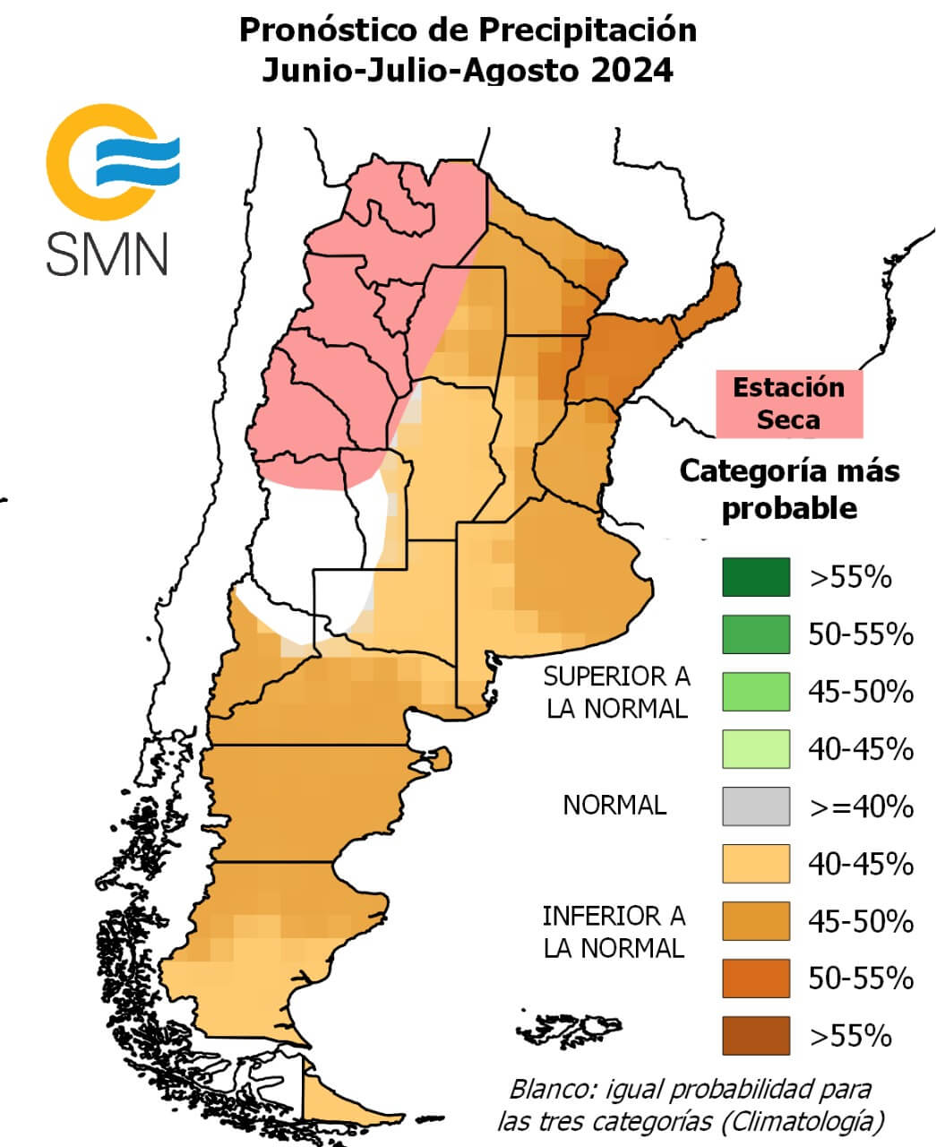 “En estas regiones, el pronóstico climático trimestral anticipa lluvias inferiores a las normales para la estación del año.”, completaron.