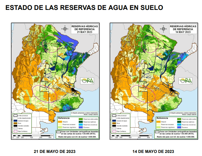 “Las lluvias registradas en la zona núcleo pampeana no fueron tan importantes ni generalizadas, pero permitieron que la estimación de humedad en el suelo en algunas zonas saliera, por primera vez en mucho tiempo, de la categoría de déficit hídrico. Actualmente esta región se reparte entre las categorías de reserva escasa y deficitaria”, resumió la ORA.