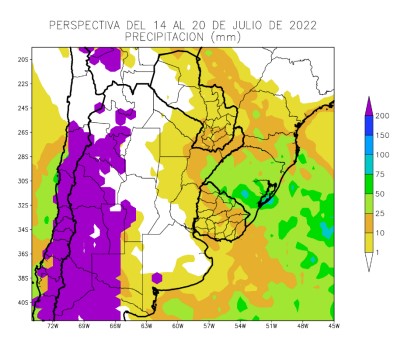 “Al comienzo de la perspectiva (el análisis se extiende desde este jueves 14 de julio hasta el miércoles 20), se completará el paso del frente de tormenta, que hizo su entrada en los días precedentes, causando precipitaciones sobre el extremo este del área agrícola”, menciona el reporte.