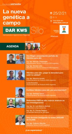 En el primer bloque, Nicolás Lista y Marcelo Chiaraviglio, ambos Representantes Técnicos Comerciales de KWS, presentarán la propuesta que ofrece el portfolio de KWS para los productores de silo, para la zona de Córdoba y Santa Fe. Por su parte, Juan Bauzer, desde ensayos de la provincia de Buenos Aires hará lo propio para los productores de dicha zona.