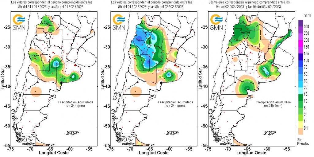 Así lo muestran los datos registrados por el Servicio Meteorológico Nacional y también diversos reportes como uno de la Bolsa de Cereales de Córdoba, que anotó precipitaciones por hasta 81 milímetros en el sur de esa provincia.