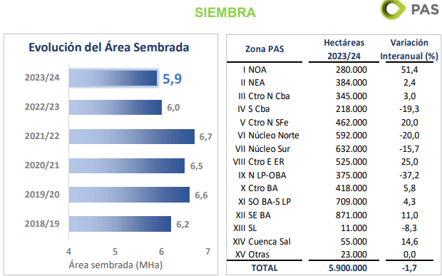 En total, se implantaron 5,9 millones de hectáreas, la superficie más baja de las últimas cinco campañas.