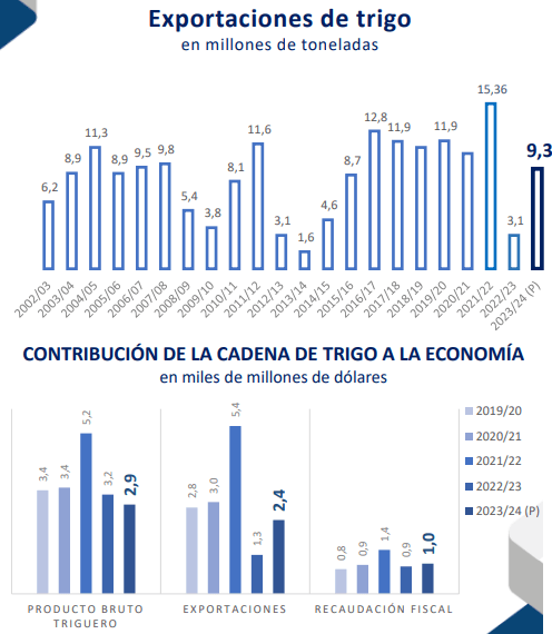 “Adicionalmente, en términos de recaudación fiscal, la cadena triguera aportaría U$S 1.000 millones, aumentando un 11% respecto al año anterior”, sostiene el documento.
