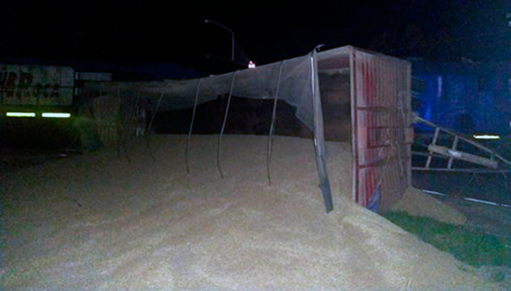 El incidente provocó el vuelco de toneladas de trigo, tal como se puede observar en las imágenes.