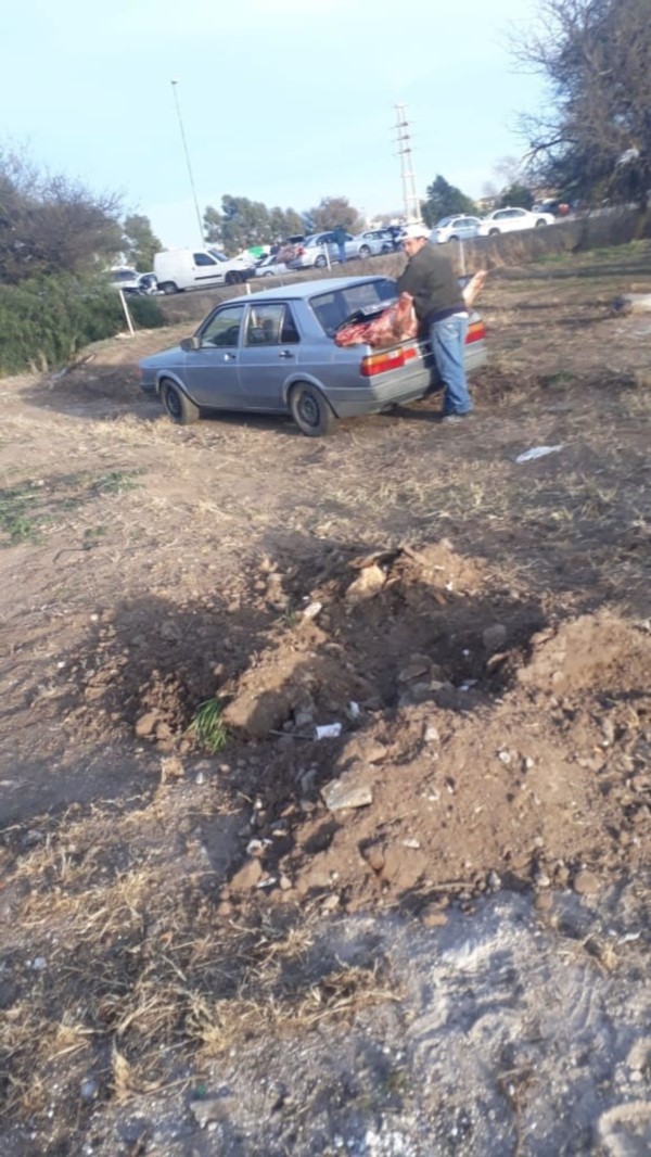 Rápidamente se corrió la voz y los vecinos se agolparon en el lugar. Con la autorización del chofer,comenzaron a llevarse la carne en motos, autos, camionetas y hasta cargadas al hombro.