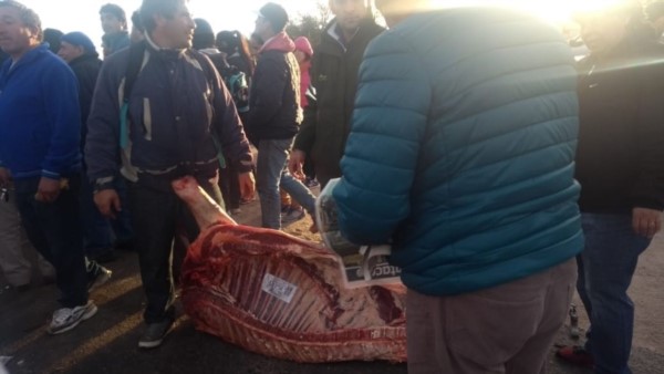 “No podemos impedir que se lleven la carne porque el chofer se comunicó con la empresa y le informaron que la carga estaba asegurada. Por eso, se dio permiso para que la gente se la lleve”, explicó el subcomisario Lucero, a cargo de la Policía de Medio Ambiente, según cita El Diario de la República.