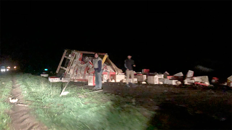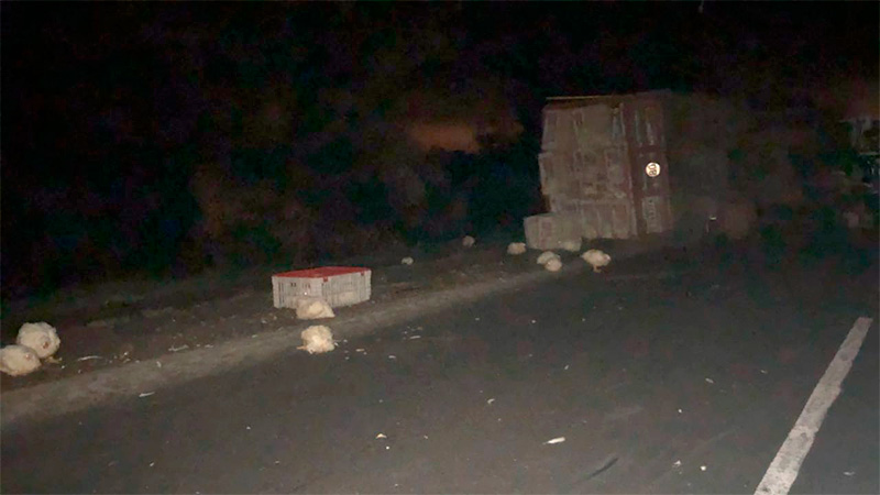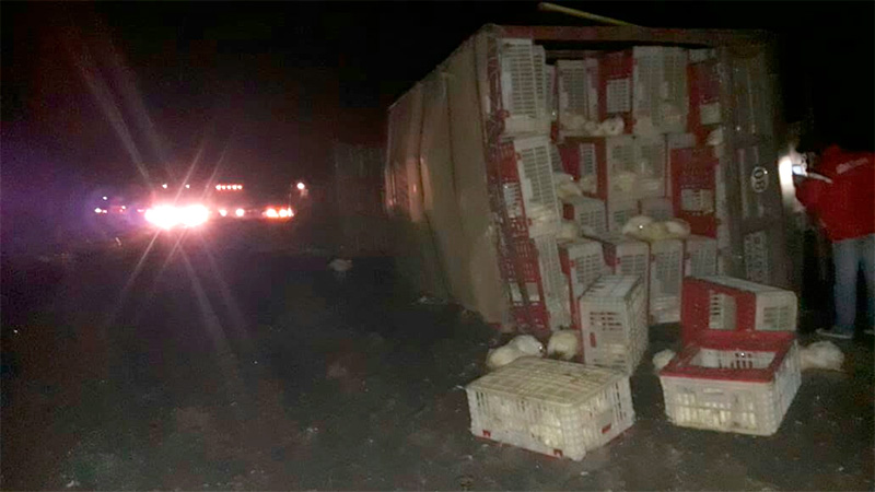 Indican que el camión trasladaba trasladaba cajones con pollos vivos. El accidente ocurrió minutos después de las cuatro y locales aseguran que por el vuelco del rodado, quedó totalmente cortada la mano de la Ruta que va con sentido, desde Buenos Aires hacia Entre Ríos.