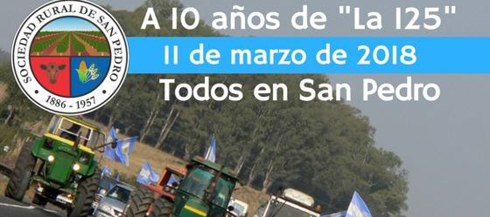 A 10 años de la resolución 125, las Sociedades Rurales de San Pedro y Baradero, Productores Autoconvocados y la delegación regional de la Federación Agraria Argentina convocan a través de las redes sociales, a una concentración el domingo 11 de marzo, en un horario a definir.