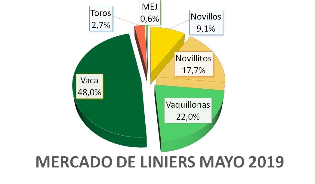 Respecto a la composición de la oferta, mayo no cambia la tendencia y la participación de las hembras en faenas se posiciona hasta el momento en el 70%. De las 88.810 cabezas comercializadas 62.160 son hembras, 48% vacas y 22% vaquillonas.