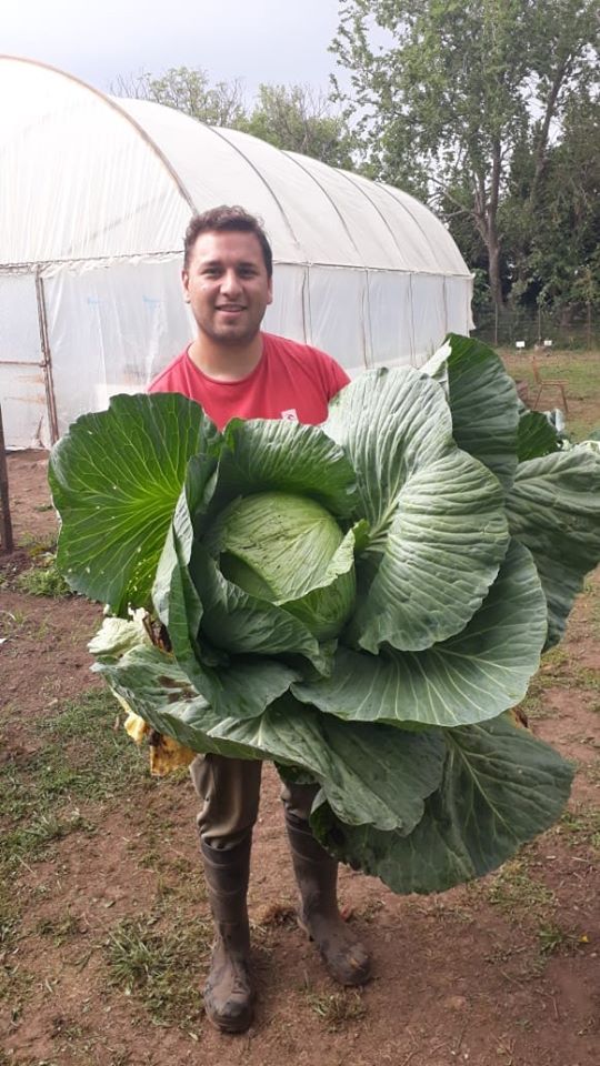 Estudiantes del Instituto Agrario de la localidad de Mariano H. Alfonzo, Provincia de Buenos Aires, ubicada sobre el km 249 de la Ruta Nacional 8, cosecharon un repollo gigante.
