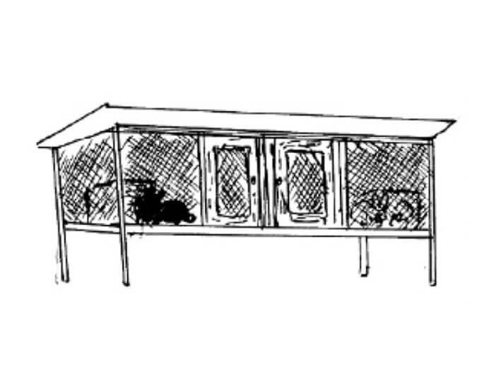 - En lugar de loza de cemento puede ser de otro material. Por ejemplo, de madera cubierta con chapa o plástico para proteger a los conejos de la lluvia y mejorar las condiciones térmicas de la madriguera.