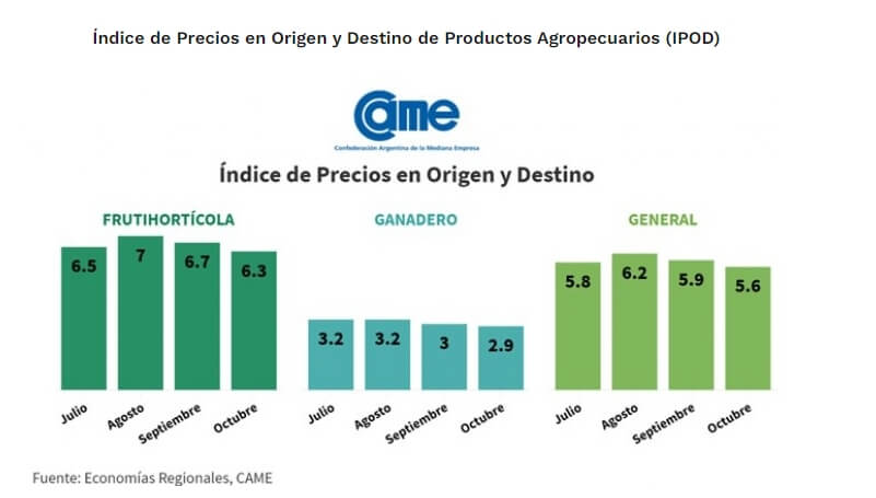El Índice de Precios Origen Destino (IPOD), que sigue la Confederación Argentina de la Mediana Empresa, mostró, para el mes de octubre, una sensible variación.