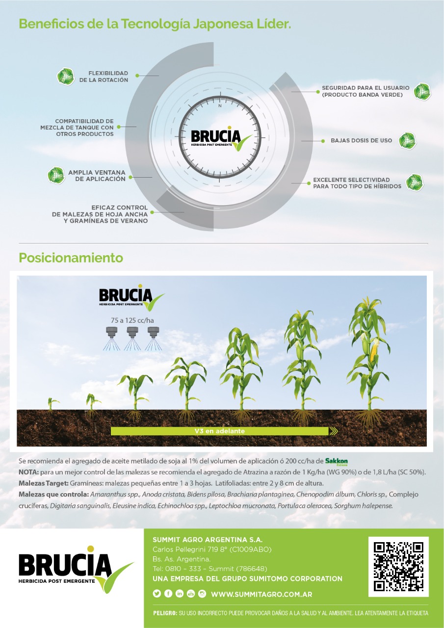 Summit Agro continúa innovando en el mercado argentino de herbicidas, y luego de Yamato y Fierce, llegó el turno de Brucia, un herbicida post-emergente para maíz que promete solucionar los problemas con las malezas más difíciles.