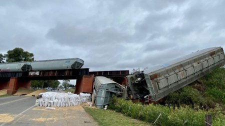 Descarriló un tren en Santa Fe: vagones con soja cayeron de un puente
