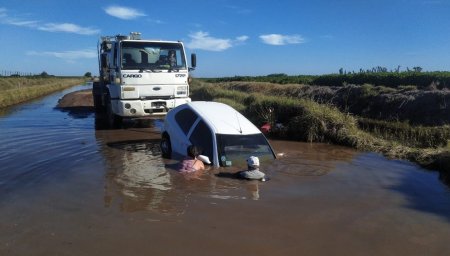 Increíble: en el mismo pozo donde cayó y se inundó una camioneta, ahora se hundieron dos autos