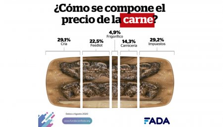 De los $372 que cuesta el kilo de carne bovina, el Estado se queda con $108 y el frigorífico con $18