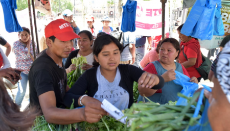 Contra el paro: organizaciones venden frutas y verduras frente a la Sociedad Rural