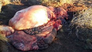 Balearon a una vaca a punto de parir, la descuartizaron y se la llevaron en pedazos