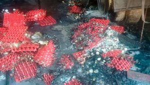 Se incendió un camión cargado con 150 cajones de huevos