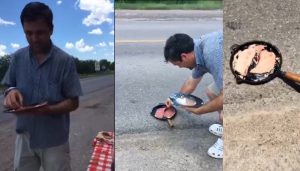 Cocinó un churrasco en el asfalto de la Ruta 34 y demostró cuánto calor hace en Santiago del Estero