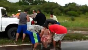 Volcó un camión con carne, los vecinos se la llevaron y terminaron intoxicados