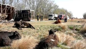 Ocho vacas murieron al volcar un camión en la Ruta 26