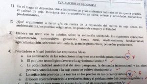 Difunden un polémico examen de geografía en contra de la soja en una escuela secundaria