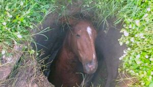 Rescataron a una yegua que se cayó en un desagüe y estuvo toda la noche atrapada