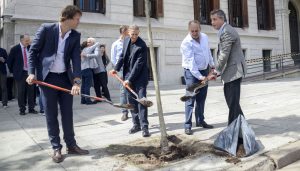 Bergman y Etchevehere plantaron un árbol en Agroindustria por el Día de los Bosques