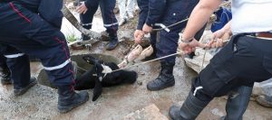 Operación rescate: una vaca se cayó en un pozo de 4 metros y salió ilesa