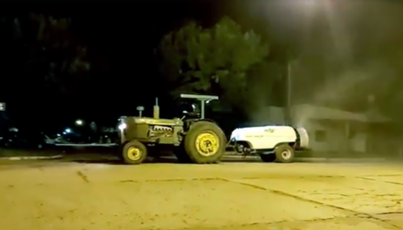 Así desinfectan en las calles de Malabrigo con máquinas de productores citrícolas