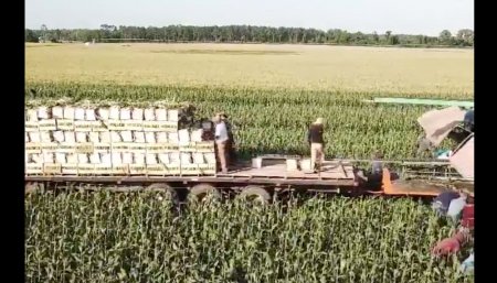 Con un dron filmó la cosecha a mano de maíz para consumo directo