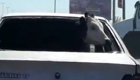 Trasladaron una vaca en el asiento trasero de un auto y se viralizó en las redes