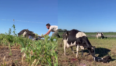 En el campo no hay feriados: un tambero ayudó a parir a una vaca en Navidad y se hizo viral