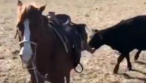La nobleza del caballo: protege a su dueño mientras atiende a un ternero