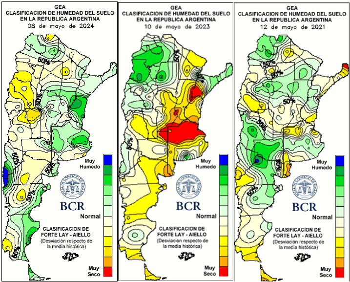 “Al análisis de lo que se espera en clima, se suman los mapas de anomalía de reservas de agua en el suelo, mostrando que lejos del peor escenario de siembra de un año atrás, las condiciones con la que comienza el ciclo de trigo 2024/25 incluso son mejores que en el 2021/22”, expresó la GEA en ese reporte.