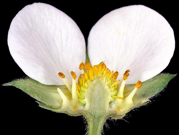La parte roja de la frutilla es en realidad el receptáculo carnoso. Esta queda de este aspecto luego de que sus óvulos son polinizados por el polen de los estambres, comienza a engrosar y finalmente vira de color indicando su madures fisiológica.