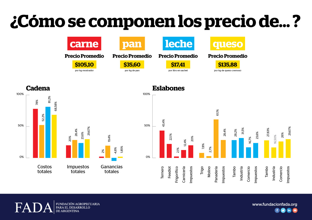 Un informe de la Fundación Agropecuaria para el Desarrollo de Argentina (FADA) reveló cómo se forman los precios de los alimentos básicos de la mesa de los argentinos: la carne vacuna, la leche y el pan.