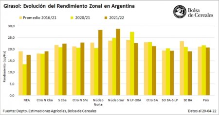 Sin embargo, sobre el extremo opuesto, en todas las regiones del sur del área agrícola, los rendimientos alcanzados terminaron por debajo del ciclo previo y del promedio de las últimas cinco campañas.