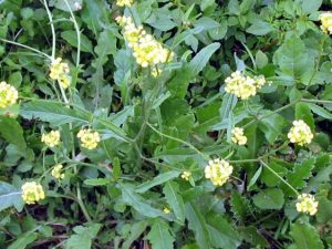 Y en estado reproductivo se presenta con flores en racimos terminales alargados, con pétalos amarillos, y de 5 a 9 mm de longitud. Los frutos son silicuas lineales, adpresas al raquis, de 10-16 mm de longitud.