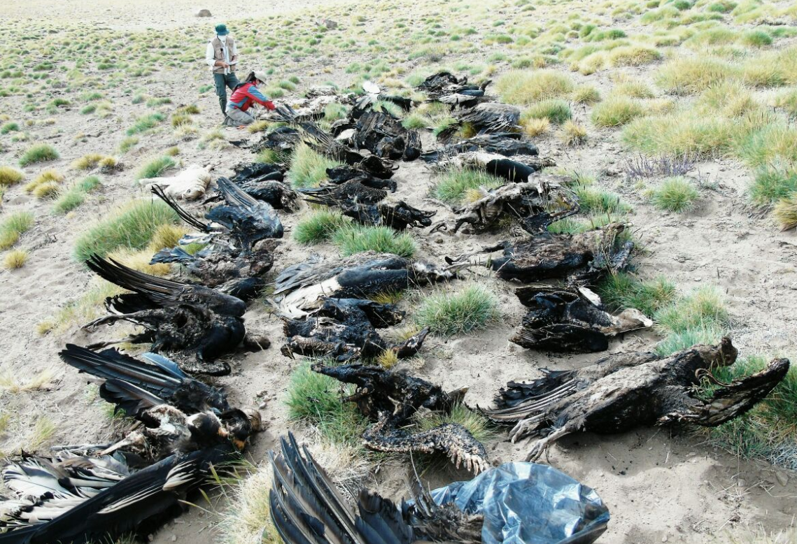 Se encontraron en total 34 cóndores muertos, distribuidos en un área pequeña. Se comprobó que los ejemplares estaban amontonados y parcialmente quemados.
