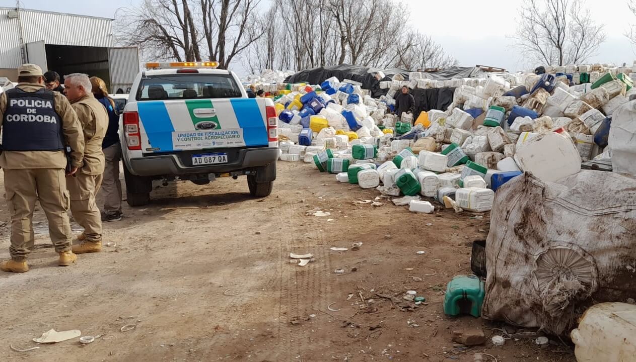 Según indicó la cartera agropecuaria cordobesa, el operativo ocurrió tras una denuncia anónima en la que se mencionaba que había un espacio en el que se acopiaban y procesaban envases vacíos de fitosanitarios de manera irregular.