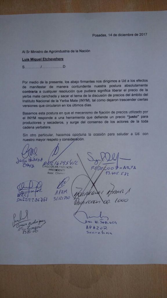“El mecanismo de fijación de precios usado por el INYM responde a una herramienta que defiende el precio ‘justo’ para productores y secaderos, y surge del consenso entre los actores de toda la cadena yerbatera”, señalaron.