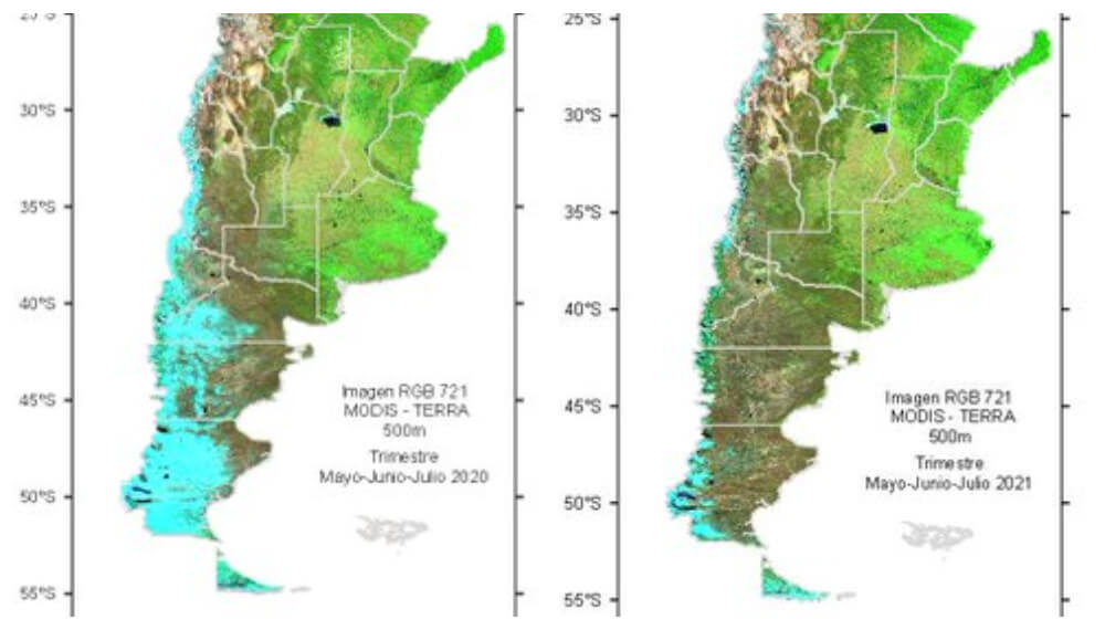 - Patagonia Sur: el período mayo-julio 2021 es el segundo más bajo desde el 2000.