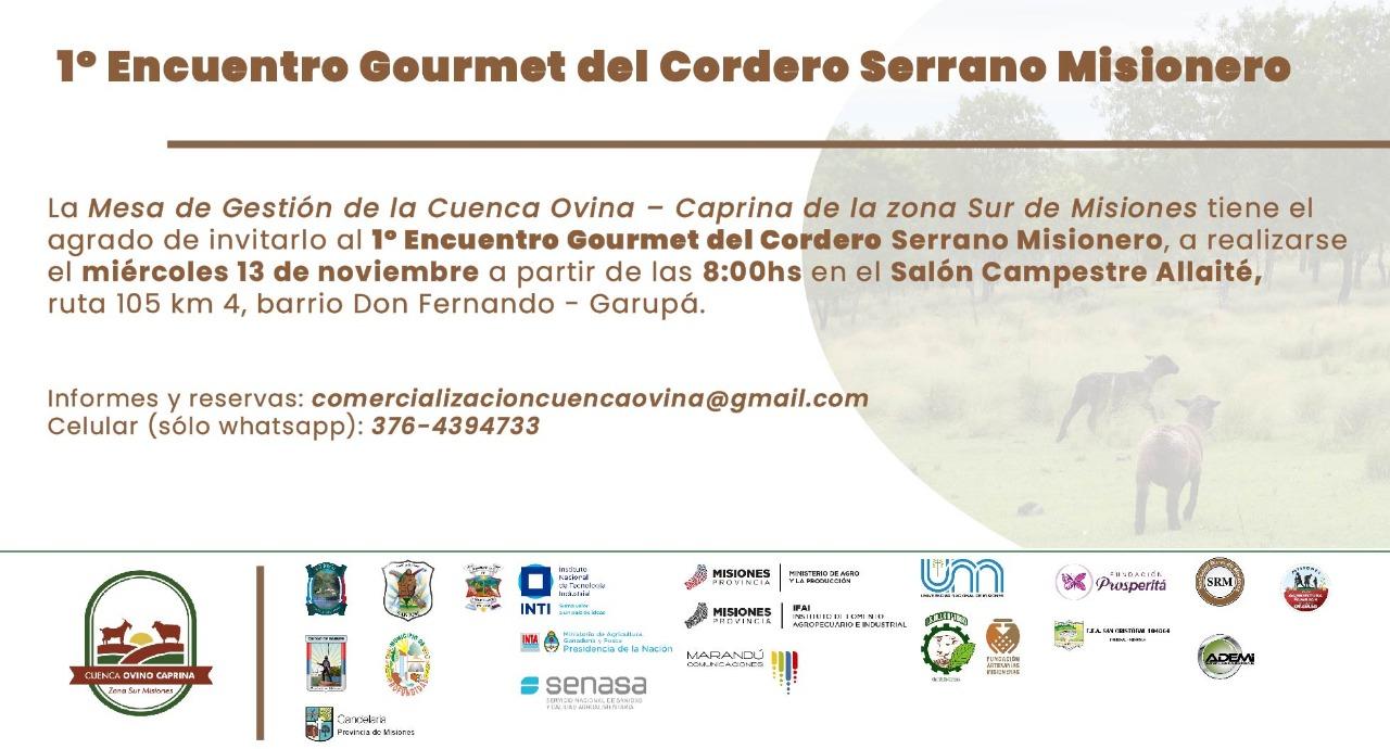 Se realizará el primer Encuentro Gourmet del Cordero Serrano Misionero, en el Salón Campestres Allaité (ruta 105, km4) en la localidad de Garupá, con el objetivo de promover el turismo y el consumo de cordero producido en Misiones. Durante el evento, el público tendrá la oportunidad de comprar los productos, degustar y conocer la calidad y el potencial de la producción ovino caprina de la provincia.